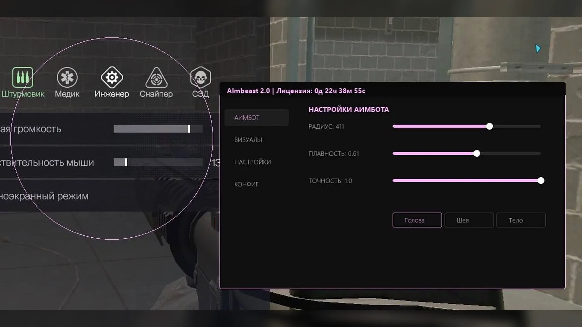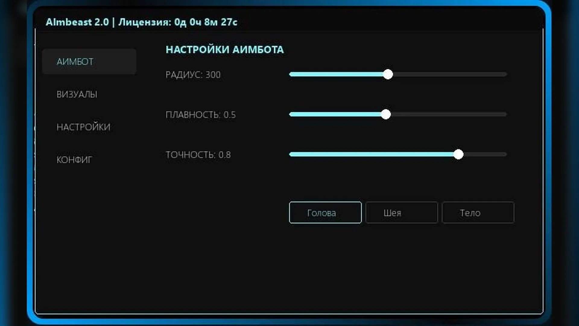 Аимбот поддерживает регулировку плавности и точности наведения, настройку области обнаружения цели и выбор кости прицеливания, включая голову, шею и тело. Это позволяет адаптировать поведение наведения под разные стили игры.