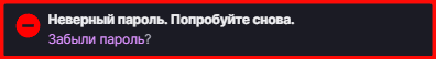 Если Вы видите такую ошибку — нужно внимательно проверить, правильно ли Вы вводите данные от Twitch-аккаунта. Не рекомендуется вводить логин и пароль вручную, лучше копировать и вставлять данные целиком. Обязательно проверьте, не вставили ли Вы лишние пробелы.